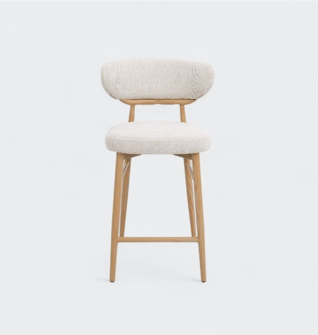 המושב המרופד מבד ארוג איכותי מעניק מראה טבעי וחמים, תוך שמירה על עמידות ונוחות לישיבה ממושכת והרגליים עשויות מתכת חזקה בגימור אלגנטי, לתמיכה מירבית ולמראה נקי ומוקפד בגוון אלון.
