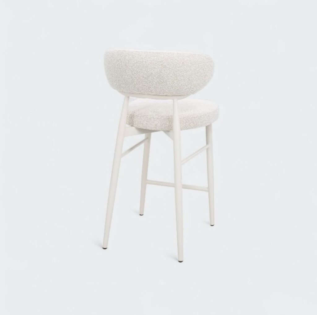 המושב המרופד מבד ארוג איכותי מעניק מראה טבעי וחמים, תוך שמירה על עמידות ונוחות לישיבה ממושכת והרגליים עשויות מתכת חזקה בגימור אלגנטי, לתמיכה מירבית ולמראה נקי ומוקפד בגוון בז'.