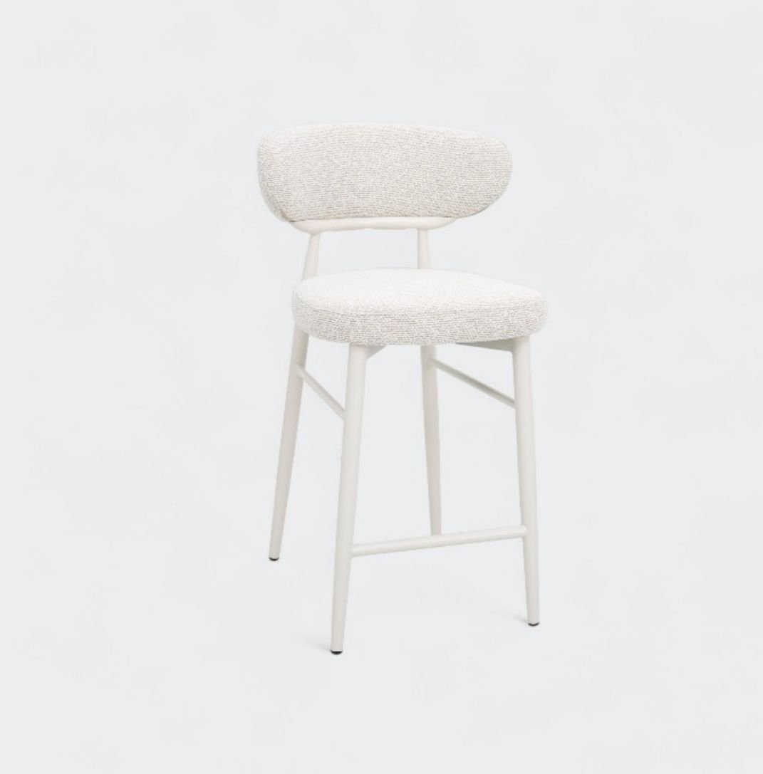 המושב המרופד מבד ארוג איכותי מעניק מראה טבעי וחמים, תוך שמירה על עמידות ונוחות לישיבה ממושכת והרגליים עשויות מתכת חזקה בגימור אלגנטי, לתמיכה מירבית ולמראה נקי ומוקפד בגוון בז'.