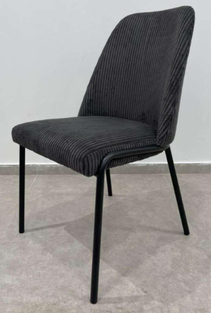 כסא לפינת אוכל בעיצוב מודרני וקלאסי, עיצוב נקי וייחודי. כסא צבע אפור מבד קורדורוי.
