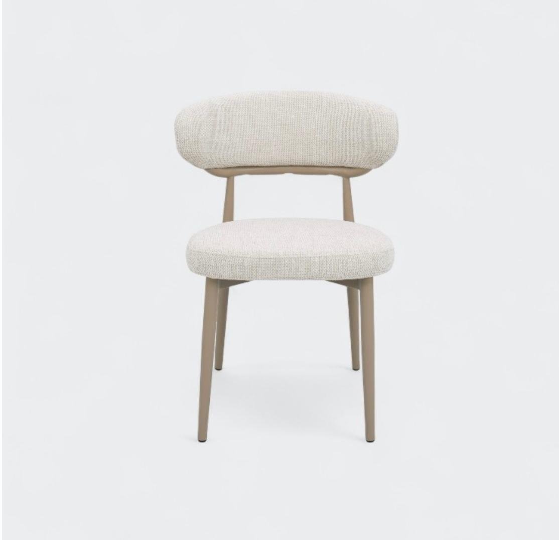 המושב המרופד מבד ארוג איכותי מעניק מראה טבעי וחמים, תוך שמירה על עמידות ונוחות לישיבה ממושכת, רגליים עשויות מתכת חזקה בגימור אלגנטי, לתמיכה מירבית ולמראה נקי ומוקפד בגוון מוקה.