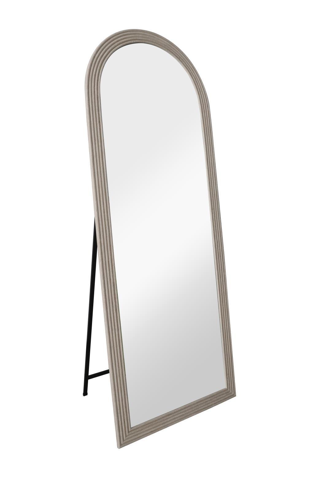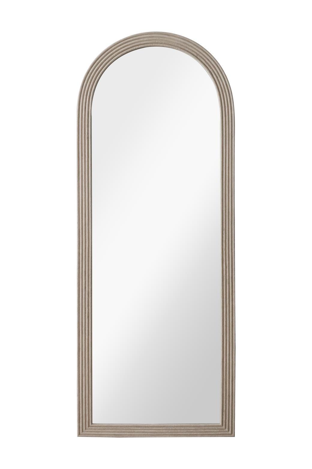 מראה קשתות מרשימה עם מסגרת דמוי טרוורטין בגוון בז', שמוסיפה חמימות ואופי טבעי לכל חלל.