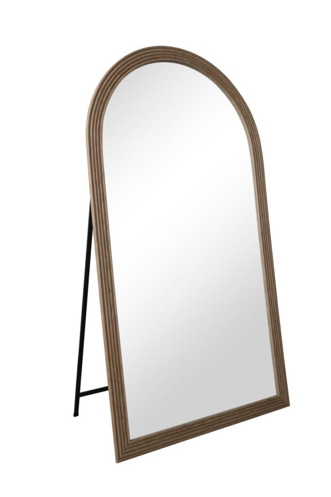 מראה קשתות מרשימה עם מסגרת דמוי טרוורטין בגוון מוקה, שמוסיפה חמימות ואופי טבעי לכל חלל.