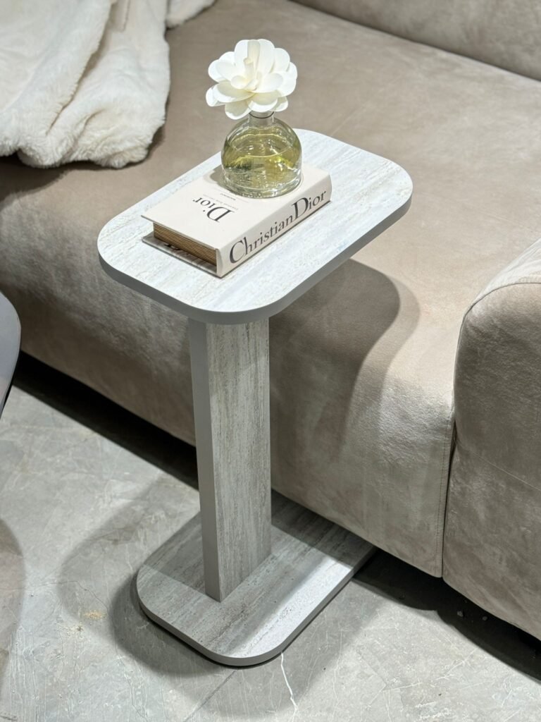שולחן צד/ נשכן בעיצוב קלאסי ונקי, בגוון טרוורטין.