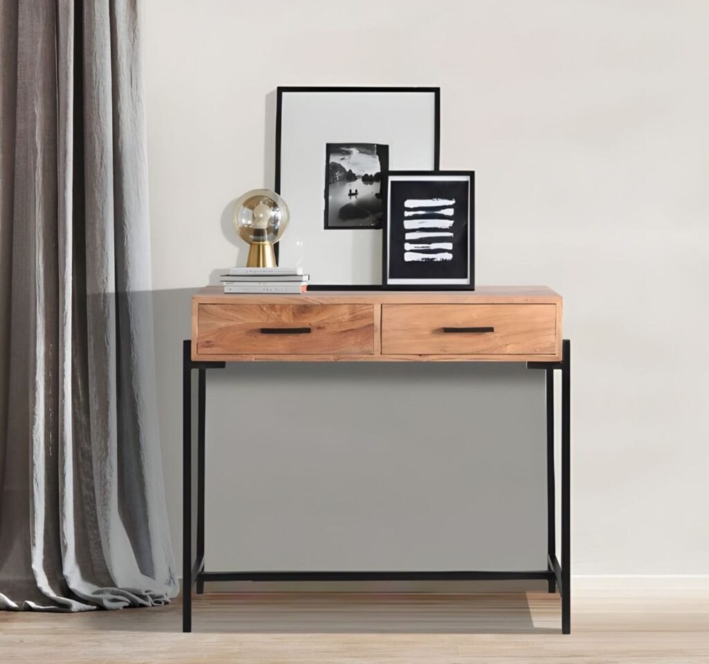 קונסולה כפרי, פריט מושלם לעיצוב חלל הכניסה או הסלון, המשלב קווים נקיים עם טאצ' תעשייתי.