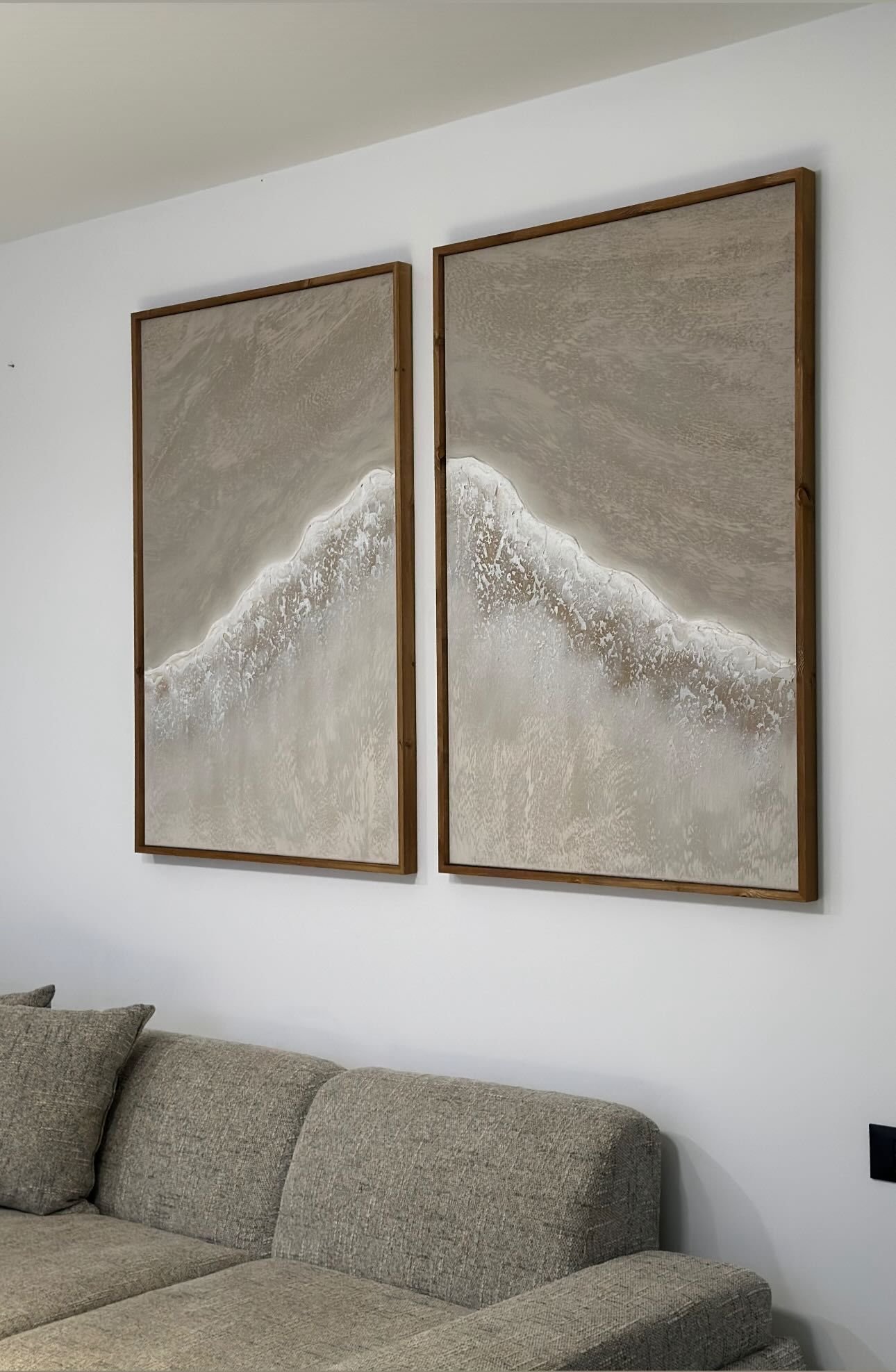 תמונה בעבודת יד, בקו עיצובי נקי ומרשים, משולבת בטקסטורה עשירה בגוון טבעי וניטרלי,